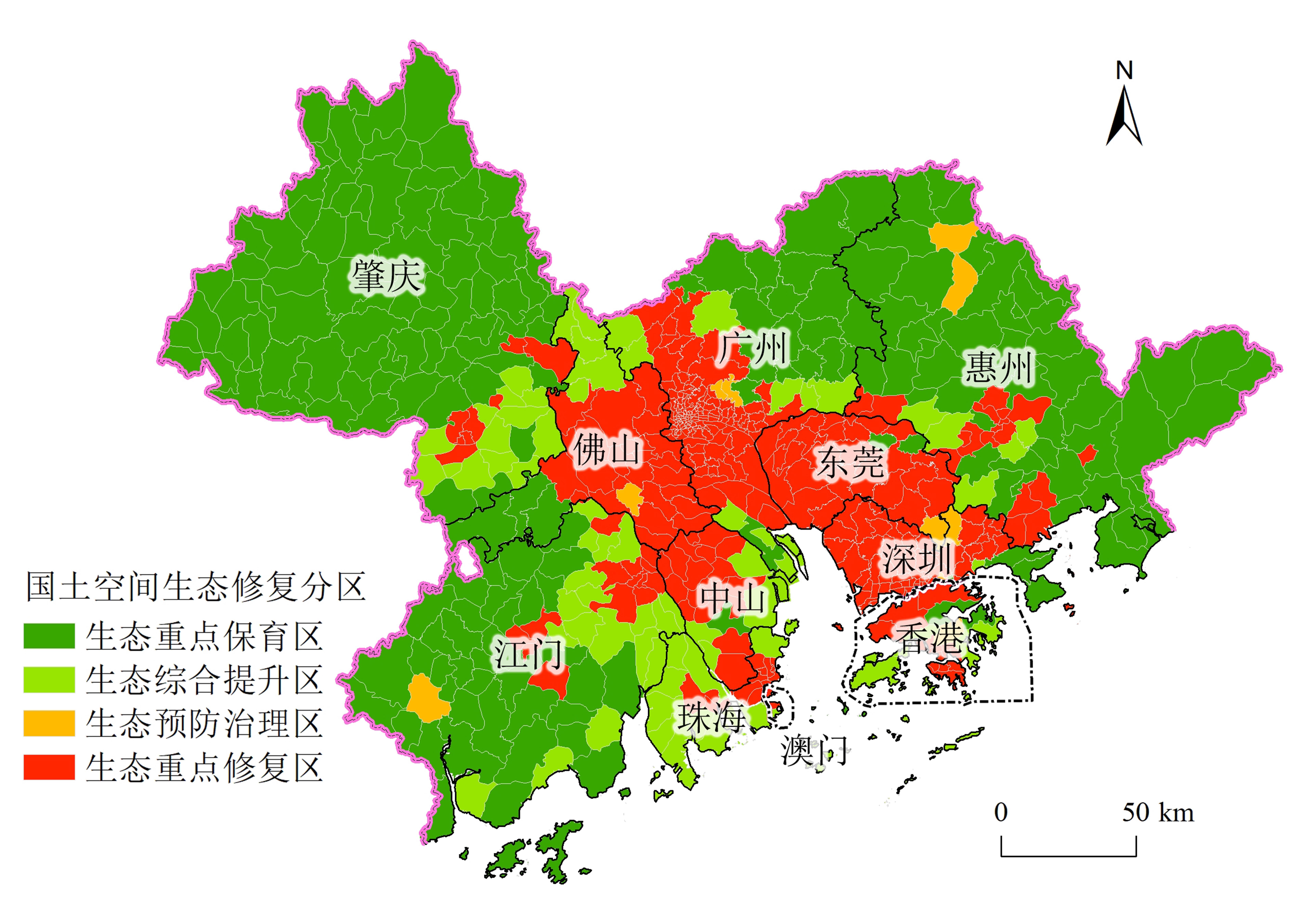 基于人类干扰评估和生态网络构建,识别粤港澳大湾区国土空间生态修复区域,划定生态源地修复区、生态廊道修复区和踏脚石修复区,提出国土空间生态保护与修复策略。结果表明:1)湾区人类活动对生态环境干扰强度高、影响范围广,高干扰和较高干扰区域占湾区总面积的48.65%,集中分布于湾区中部;2)湾区生态网络整体呈现“两横四纵”的特征,包括北部连绵山体生态屏障、南部近岸海域生态防护带、东部和西部陆域廊道以及中部水域廊道;3)湾区国土空间生态修复区包括生态源地4 687.42 km2,生态廊道1 362.71 km,踏脚石833.82 km2,主要分布于肇庆市、惠州市、江门市,从生态网络功能与结构完整的角度,提出国土空间生态修复策略;4)湾区亟待突破区域本位主义理念,凝聚国土空间生态修复协同处置的共识,组建跨域协同治理机构,主导跨区域国土空间生态修复工作。