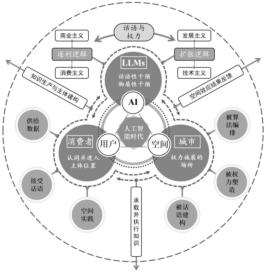 人工智能(AI)时代,大语言模型是公众认知城市空间的重要信息媒介,AI话语也成为建构城市空间的力量。文章以广州为案例,构建城市消费空间幻觉评估问题集,在“话语—权力”框架下,用幻觉测试分析DeepSeek、ChatGPT中外AI模型在空间话语生产中的异同,解释AI幻觉话语对城市消费空间的构建。主要结论为:1)AI话语响应主流空间话语,对揭示城市复杂、多元、矛盾的真实面貌表现不足;ChatGPT采用通用框架描述城市消费空间,DeepSeek空间叙事遵循城市规划与发展战略。2)通过对政府、媒体与商业机构特定话语的整合与再生产,AI作为新型权力主体建构多元“现实”,使权力得以“合理”运行。3)AI幻觉话语建构空间,为用户设定位置,用户在认同并接纳这些位置后,承载特定知识进而开展消费空间实践,产生的新数据用于同一套话语的再生产。由此,特定知识体系和权力得以维系与运行。