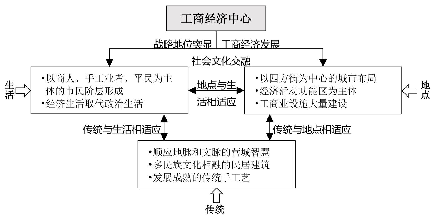 活态遗产地演变发展是连续性空间生产过程,揭示其特征与逻辑对于活态遗产地的保护、利用与传承具有重要意义。将表达遗产地活态性的3个要素——传统、地点、生活与“空间三元辩证法”相耦合构建TSL(Tradition-Site-Living)模型,并以丽江古城为例,探讨活态遗产地持续变化的一般规律。结果发现:1)古城经历了三个阶段的空间生产,即政治功能主导下的“空间中的消费”,工商功能主导下的“空间中的生产”,旅游功能主导下的“空间的生产和消费”;2)外部环境因素变化促使古城核心使用功能演替,引发生活、地点、传统相互作用,从而实现各个阶段的空间生产过程;3)活态遗产地连续性空间生产是外部因素驱动内生机制运行的结果,遵循时空延续变化、外部环境因素驱动、内部活态要素运作三大逻辑。活态遗产地是由时间、环境、空间叠合而成的时空连续体,TSL模型为揭示活态遗产地持续变化的基本规律提供了理论框架。