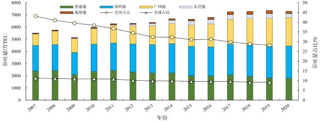 | 东莞港 | 2 | 1 | 1 | 0.368 794(48) | 广州港、珠海港 | 东亚(粤港澳) |