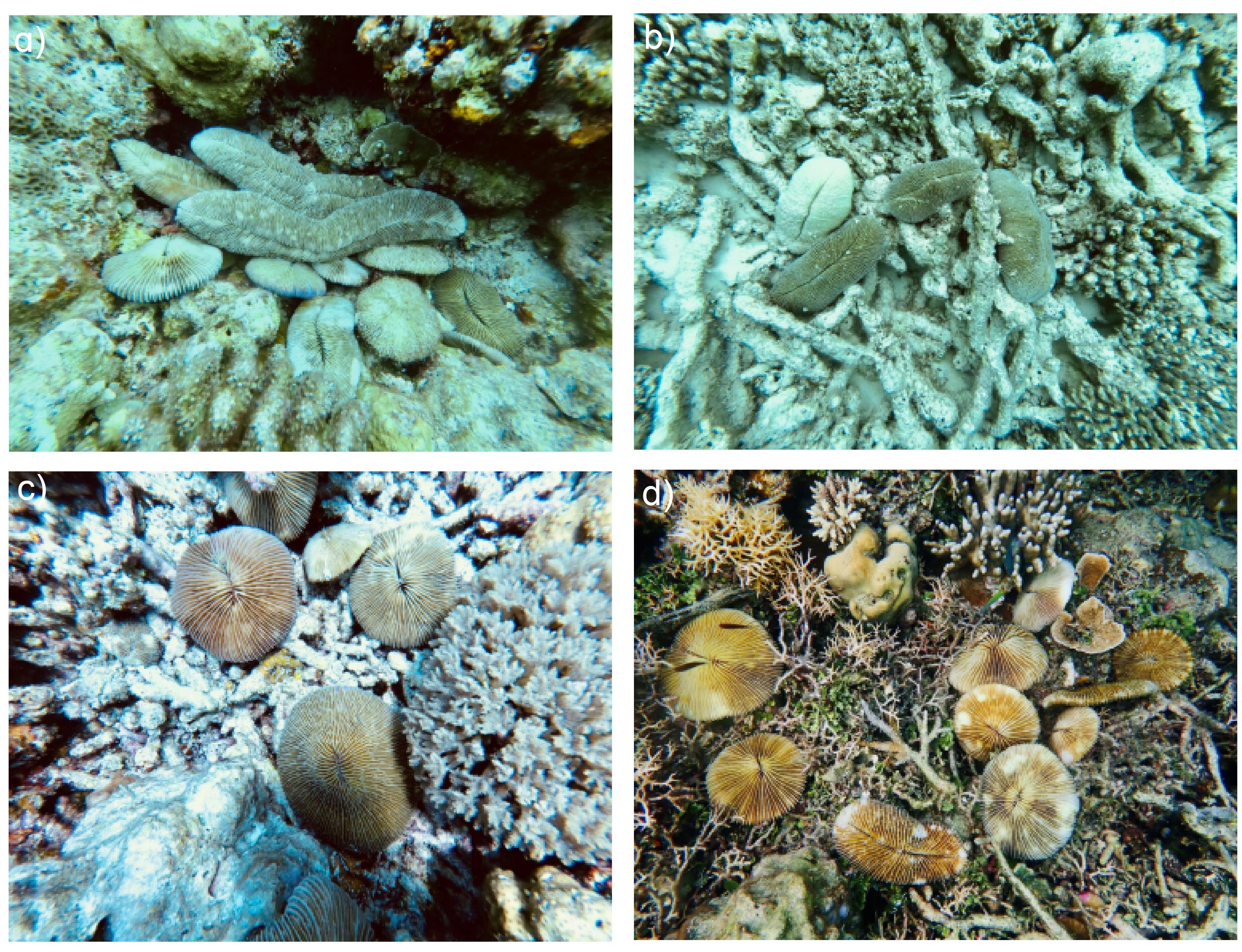 Feliciano G, Gagalac L, Nava A and Licuanan W. 2018. Size Structure and Possible Bleaching Susceptibility of Mushroom Corals in the Philippines Following a Bleaching Event. Regional Studies in Marine Science, 24: 288-295.
