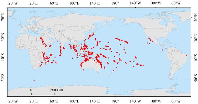 Kohn A J. 2001. World Atlas of Coral Reefs. PLoS One, 8: e68110.