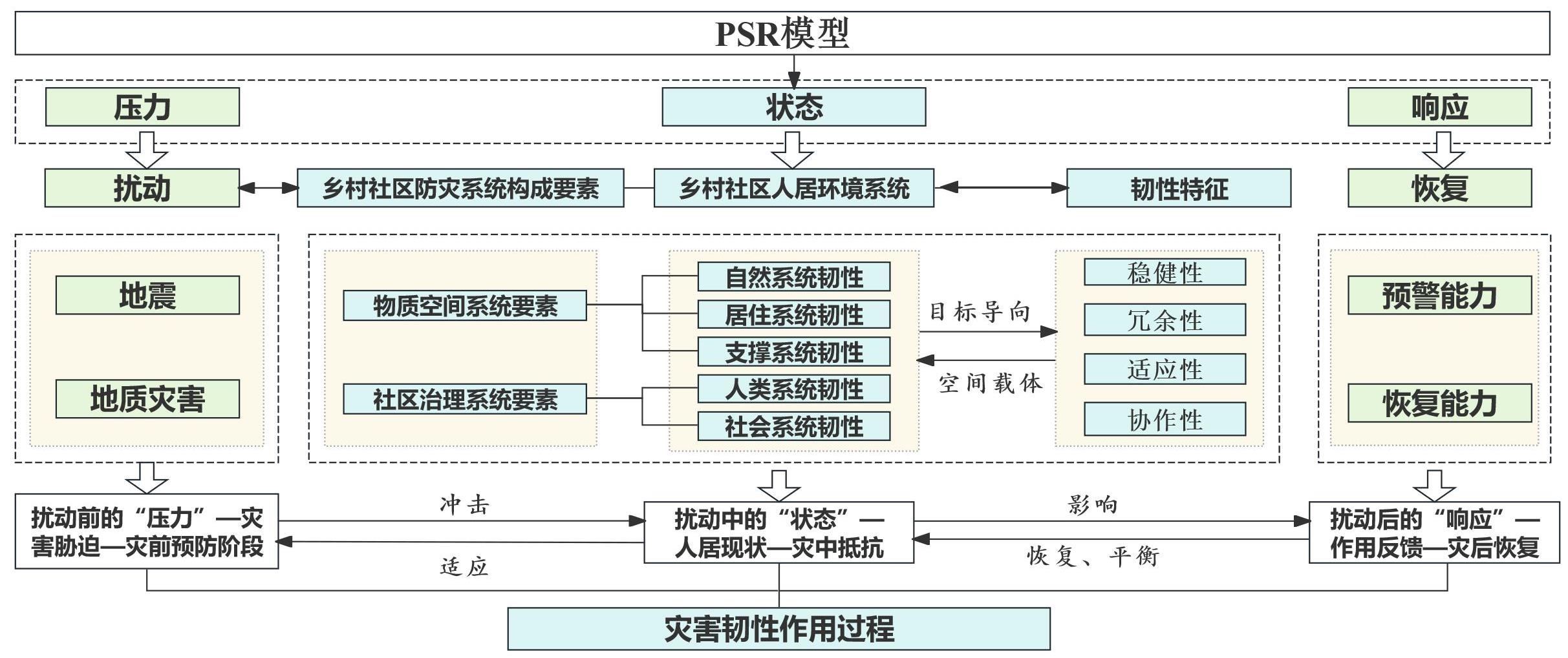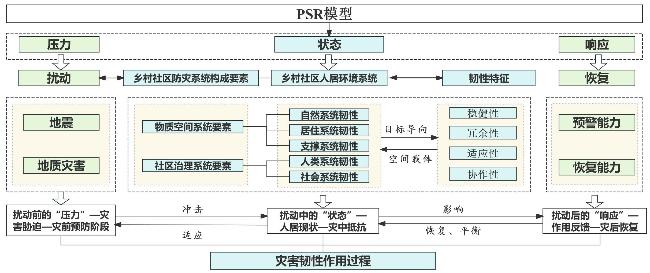图3 基于PSR模型的乡村社区灾害韧性认知框架Fig.3 Disaster resilience cognitive framework of rural communities based on PSR mode |
