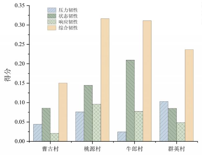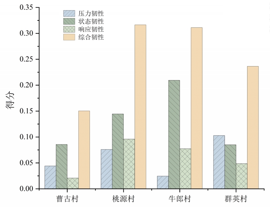 表5 典型乡村社区各要素层韧性水平得分Table 5 Resilience level scores of each element layer in typical rural communities |