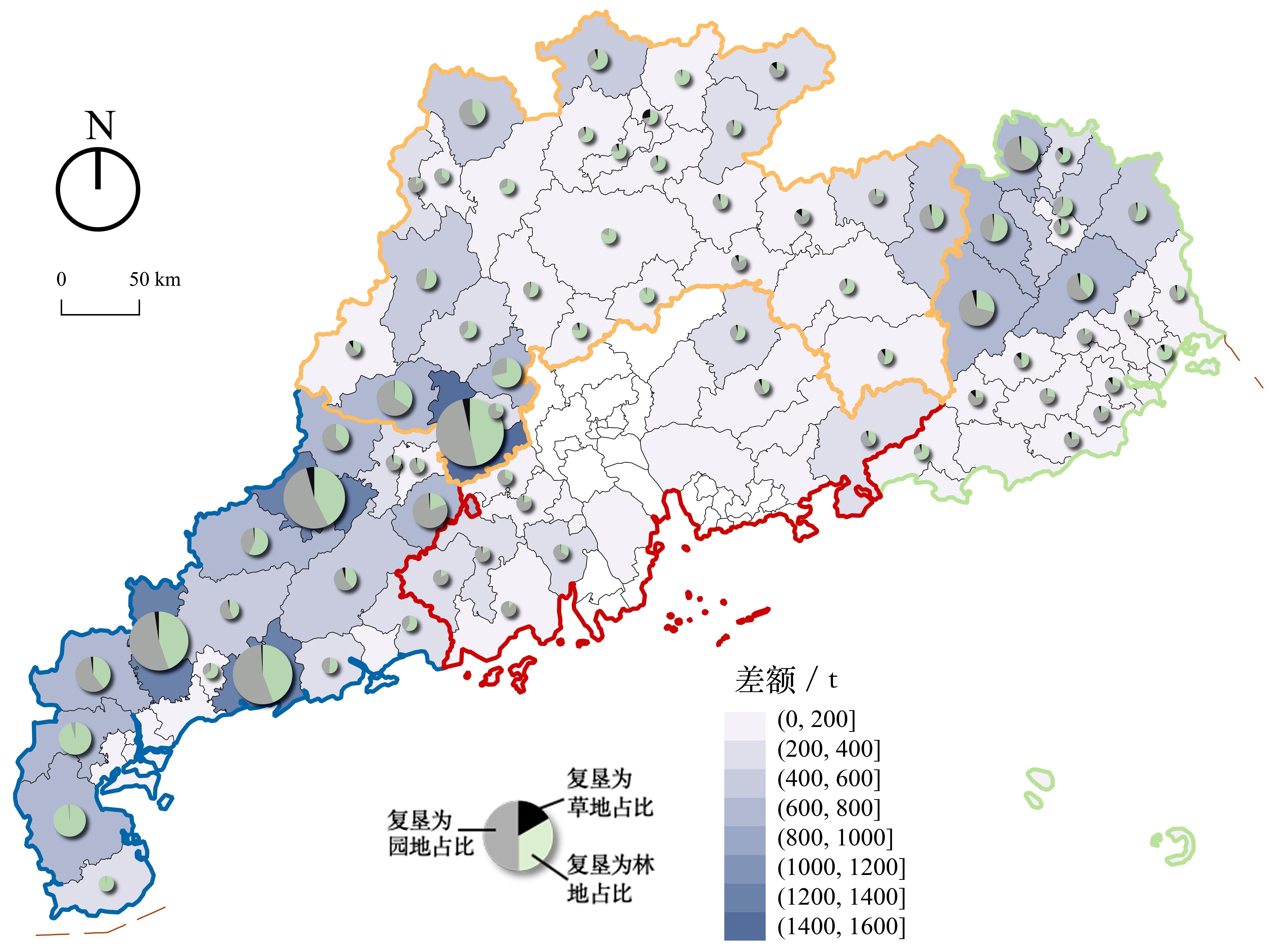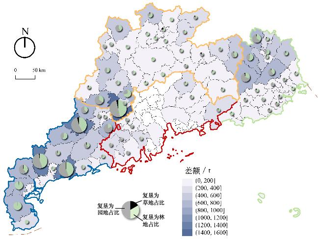 附表2 广东省各县区拆旧复垦实际实现量和碳储量贡献度Appendix table 2 Actual amount of Demolition and Reclamation and carbon storage contribution in counties of Guangdong Province |