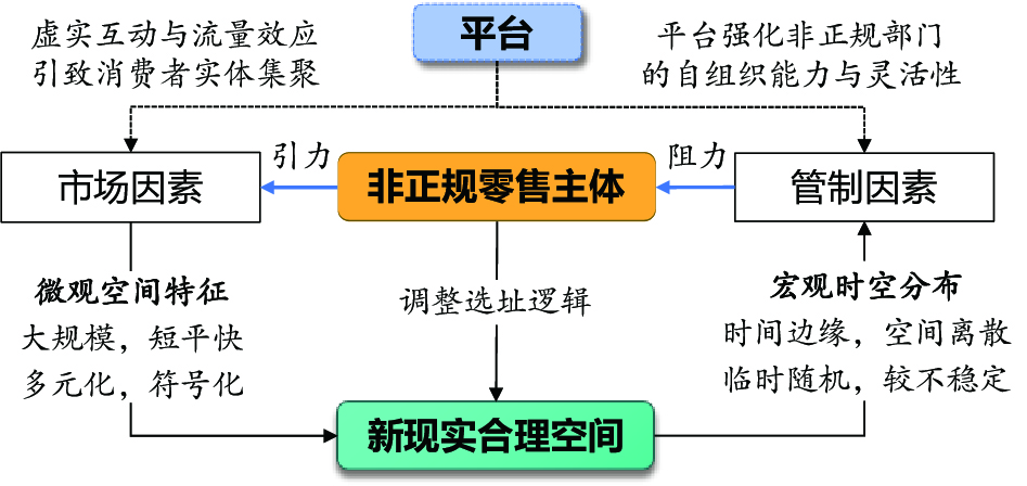 Although traditional street vendors and night markets have long been embedded in stable spatial patterns shaped by pedestrian flow, localized social relations, and regulatory rhythms, emerging platform-led formations such as Nanjing’s "Ghost Market” reveal a new mode of informal spatial production driven by algorithmic visibility, real-time coordination, and virtual-physical interactions. These dynamics have generated a distinctive form of informal retail space that blends high flexibility with rapid large-scale agglomeration. Using the "Ghost Market” as a representative case, this study investigates how digital infrastructure has reconfigured informal retail in the mobile Internet era. Drawing on six months of mixed-method fieldwork, including digital ethnography (platform observations, participation in vendor WeChat groups and Douyin channels), semi-structured interviews with vendors and regulatory actors, and repeated on-site observations of spatial layout, crowd distribution, and operational rhythms, the spatiotemporal evolution of the "Ghost Market” is reconstructed and its underlying formation processes are identified. The findings indicate that platform logic fundamentally alters informal vendor decision-making processes. First, site selection has shifted from a passive dependence on physical footfall to the active pursuit of algorithmic visibility. This enables vendors to attract customers, even in marginal spaces, such as administrative boundaries or unused roadways, while reducing regulatory risks and maintaining operational flexibility. Second, platform-mediated coordination substantially enhances vendors’ collective self-organization and mobilization. Social media and messaging applications facilitate real-time enforcement information circulation, coordinated relocation across districts, and synchronized movement of vendors and consumers. Third, flow-oriented logic transforms informal retail from a livelihood-based practice into a hybrid, spectacle-driven “Internet celebrity” event, producing spatial formations that are temporary, mobile, symbolically charged, and deeply shaped by online circulation. However, the forces that enable rapid agglomeration also generate new governance dilemmas. Platform-enabled agglomeration amplifies preexisting externalities such as noise, traffic congestion, waste accumulation, and safety hazards at scales that exceed conventional enforcement capacity. Simultaneously, they also exhibit weak embeddedness owing to their fluid locations, late-night operations, and transient user groups, which limit community ties and undermine opportunities for local negotiations. Furthermore, the sustainability of platform-driven informal spaces is similarly fragile: once digital attention dissipates, popularity rapidly declines, revealing the volatility of platform-driven informal spaces. Based on these findings, this study proposes a more adaptive governance approach suited to the mobile Internet era. Instead of relying on binary crackdowns or tolerance, authorities should identify low-risk spaces where flexible nighttime operations can be accommodated, selectively use digital platforms for basic coordination and safety notifications, and support lightweight vendor self-organization, while focusing regulatory efforts on bottom-line supervision. Such strategies can balance informal economic vitality with spatial order in rapidly evolving platform-mediated environments. This study contributes to urban research in three ways. First, it conceptualizes digitally mediated informal retail as a new spatial formation, characterized by the paradoxical coexistence of flexibility, scalability, and instability. Second, it identifies platforms as active spatial intermediaries that reshape site selection, organizational capacity, and symbolic production of informal spaces. Third, it advances governance debates by arguing that traditional approaches—either tolerating or eliminating informal retail—are insufficient in the platform era. Instead, adaptive strategies should leverage digital coordination, enable negotiated regulation, identify low-risk operational zones, and support grassroots organizational logic.