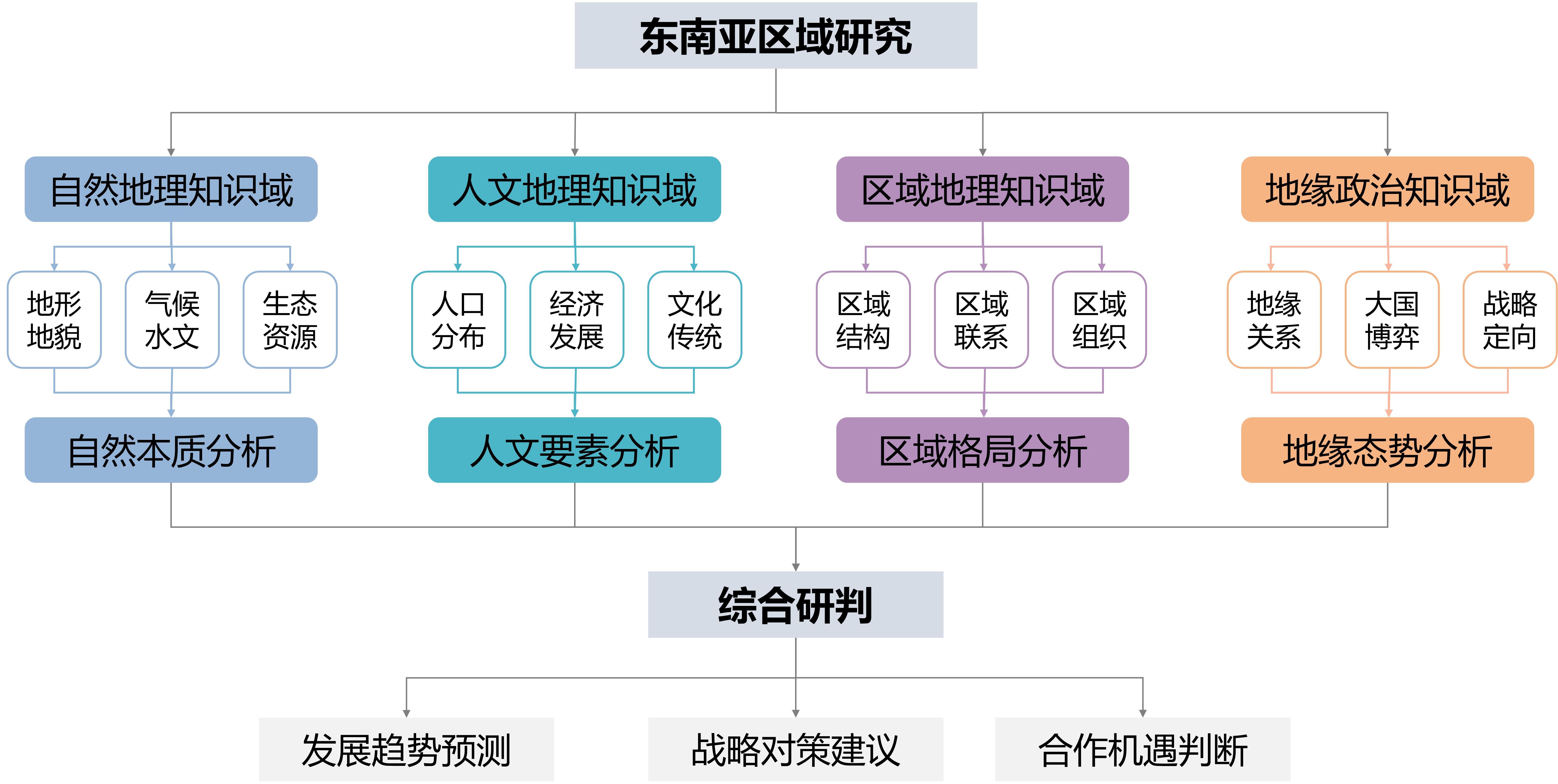 In the era of post-covid globalization, the integration of geography and country and region studies is becoming increasingly urgent. This study draws on the concept of the "epistemic domain" to explore the convergence and possible pathways for integrating these two disciplines at the level of knowledge construction, research paradigms, and methodologies, using Southeast Asia as a case study. The "epistemic domain" (domain of knowledge) refers to the "space of knowledge," which is the manifestation of knowledge in different contexts such as "academic knowledge" and "public knowledge." It emphasizes the integration of traditional geographical knowledge and regional studies. The "epistemic domain" is characterized by multi-scale, multi-domain, and relativity. The conclusions suggest that the perspective of the "epistemic domain" helps to break down disciplinary boundaries and promotes the organic integration of geography and country and region studies. Combining these two fields will give rise to a new knowledge system for regional studies. The holistic perspective of geography, combined with the diverse perspectives of country and region studies, will foster innovative interdisciplinary research paradigms; the quantitative analysis of geography and qualitative research methods in countries and regions can also achieve complementary integration. Using Southeast Asia as an example, the integration of these disciplines should focus on the interaction between resource environments and socio-economic factors, intrinsic mechanisms of spatial political economy, and coexistence of cultural diversity in the region. This should be approached through an interdisciplinary research pathway that combines holistic and diverse perspectives, resulting in a balanced quantitative and qualitative "epistemic domain" methodology. Although the "epistemic domain" concept provides a new perspective on interdisciplinary integration, issues such as operational inadequacies and the potential overshadowing of global knowledge universality by regional orientations need to be addressed. Future dialogues and exchanges between different "epistemic domain" backgrounds must be strengthened. In summary, the close integration of geography and country and region studies within the "epistemic domain" framework aligns with contemporary development trends and will contribute new cognitive intelligence to address the challenges of global integration and regional diversity.
