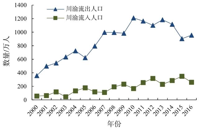 数据来源:人口流出数来源于抽样调查数据,户籍人口数来源于四川、重庆统计年鉴。 |