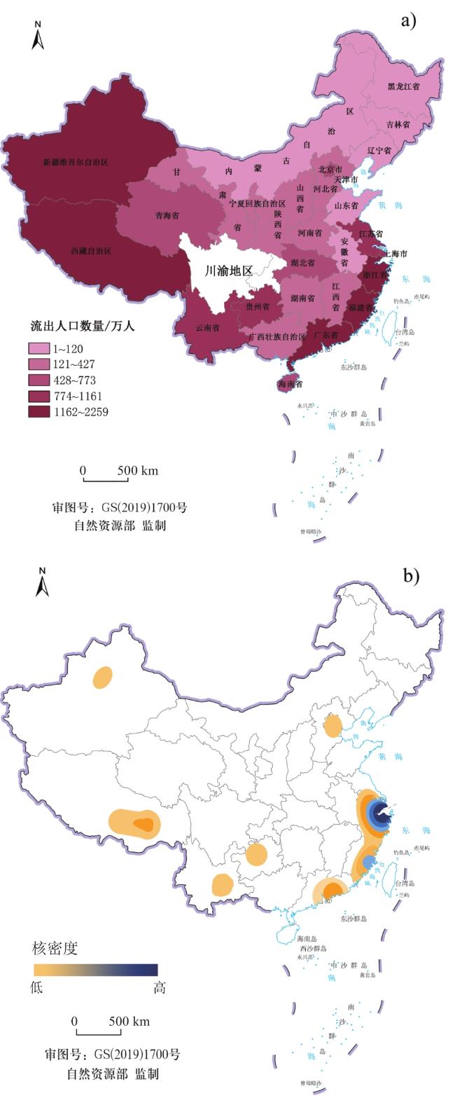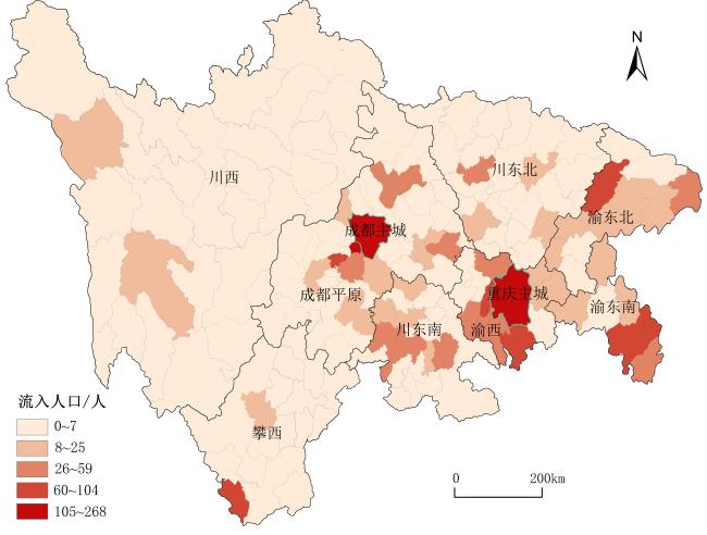 表1 川渝人口区际流出地层级分布Table 1 The outflow population of Sichuan-Chongqing area is distributed in different levels |