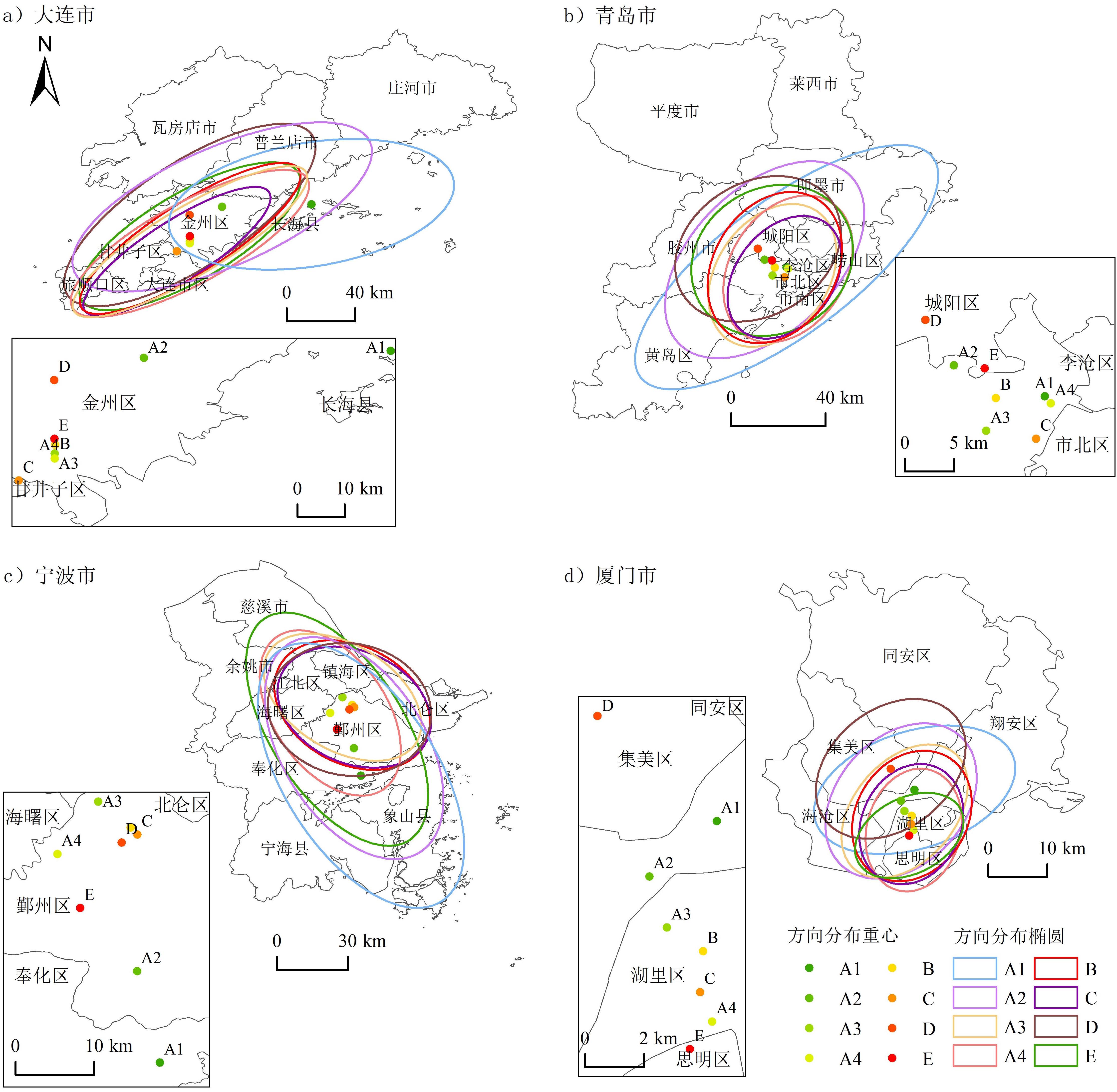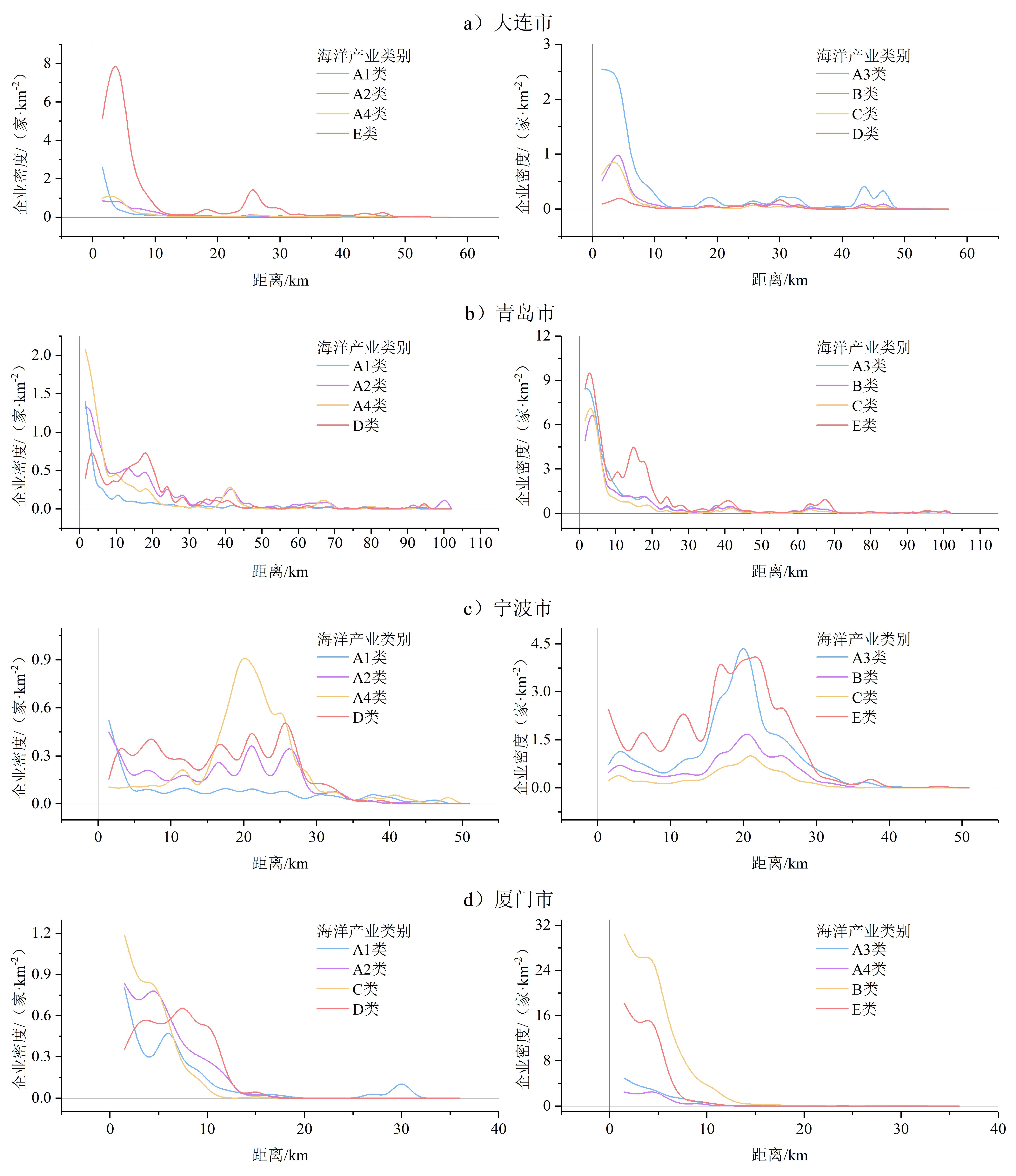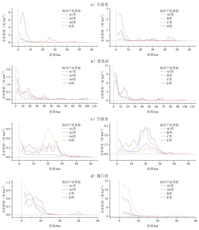 表4 四城市海洋产业空间结构类型划分Table 4 Classification of spatial structure of marine industries in Dalian, Qingdao, Ningbo & Xiamen |