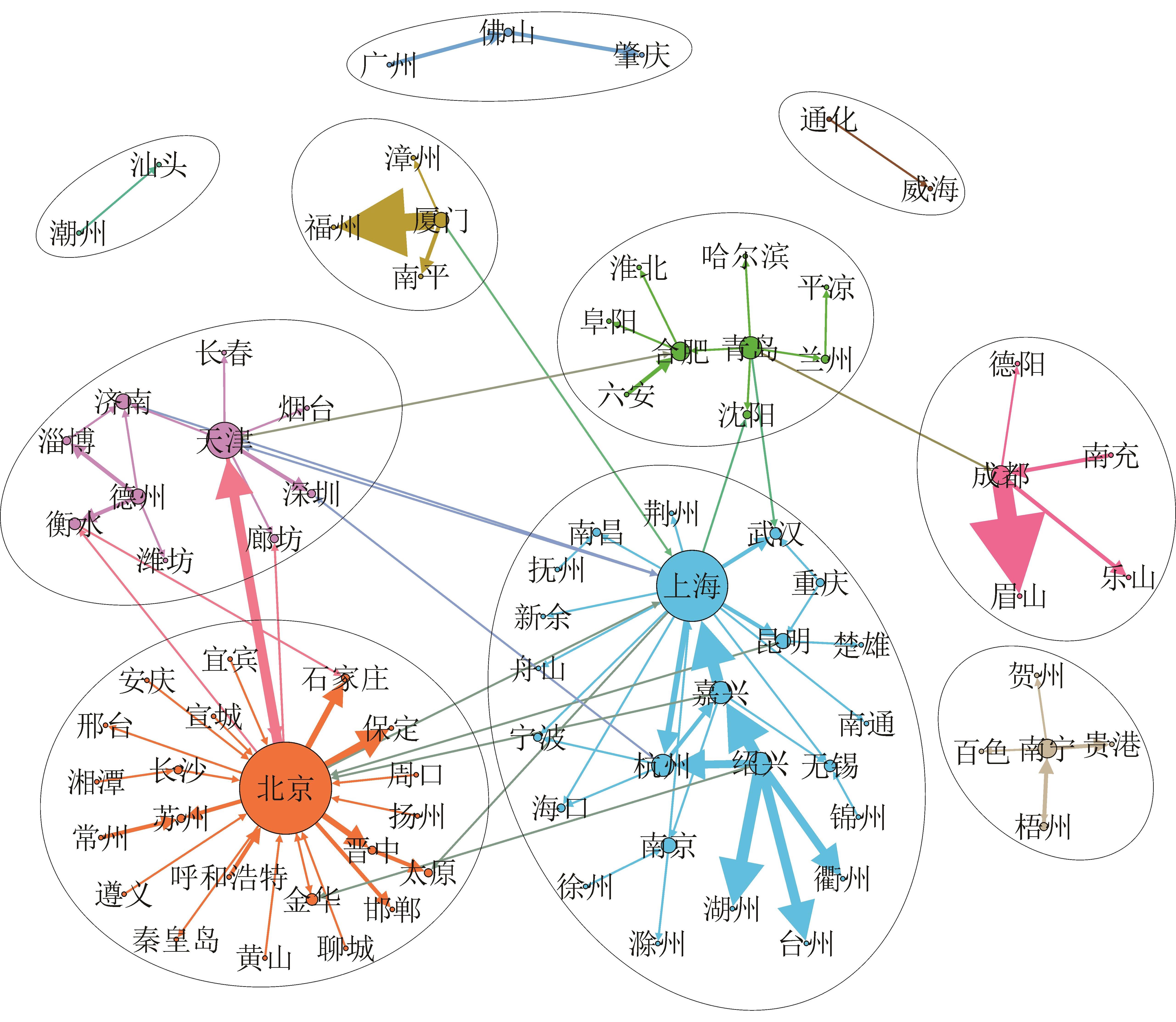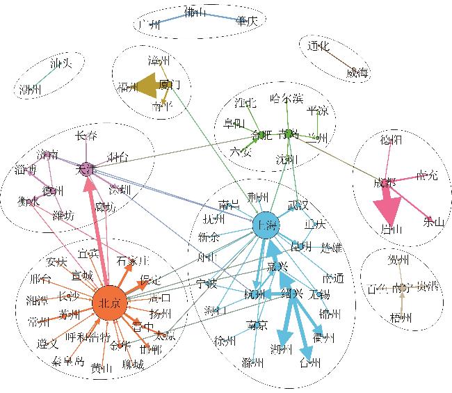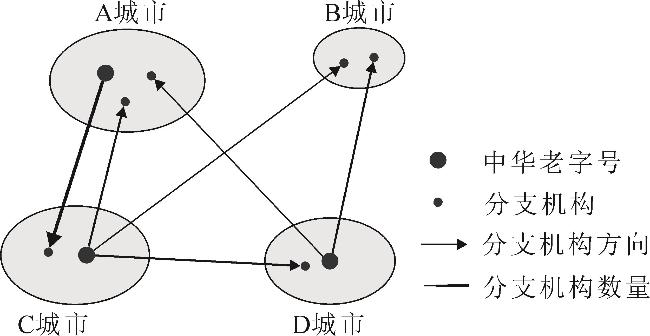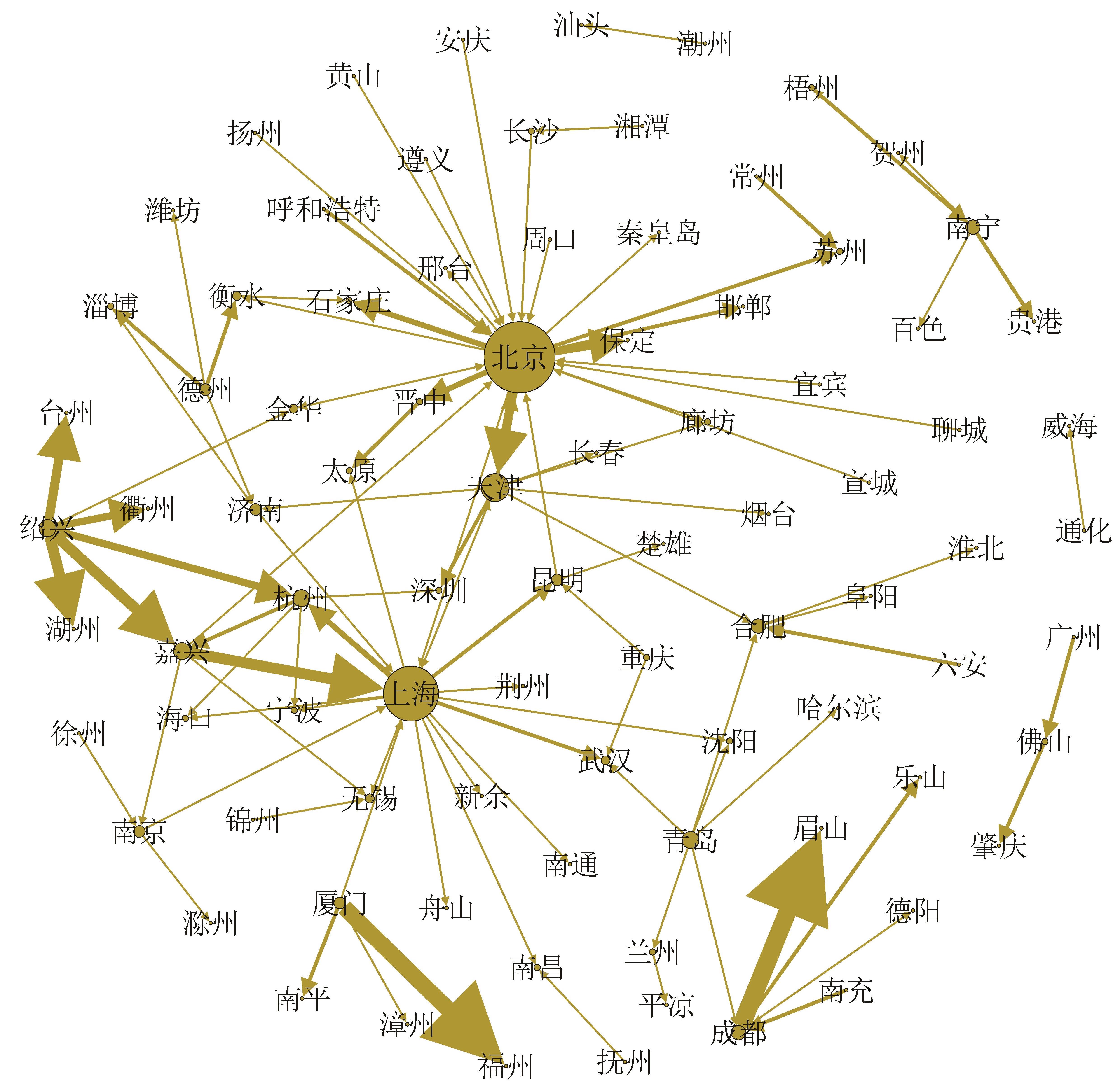 图2 中华老字号企业城际扩张网络 Fig.2 The intercity expansion network of Chinese time-honored brand enterprises |