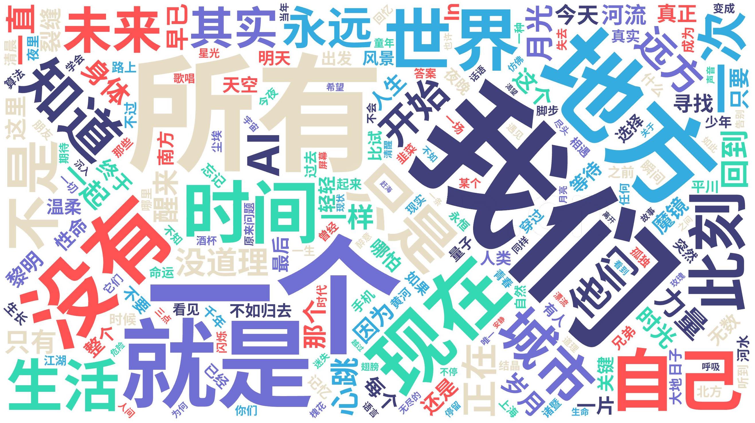 | 空间 表达 | 城市、西北、数字世界、 地球家园 | 西北到上海的地域叙事,从荒野到都市 | 地名作为人生轨迹的 隐喻 | 情感化的生活空间切片 | 内心与远方的对话, 家园与旅途的交织 |